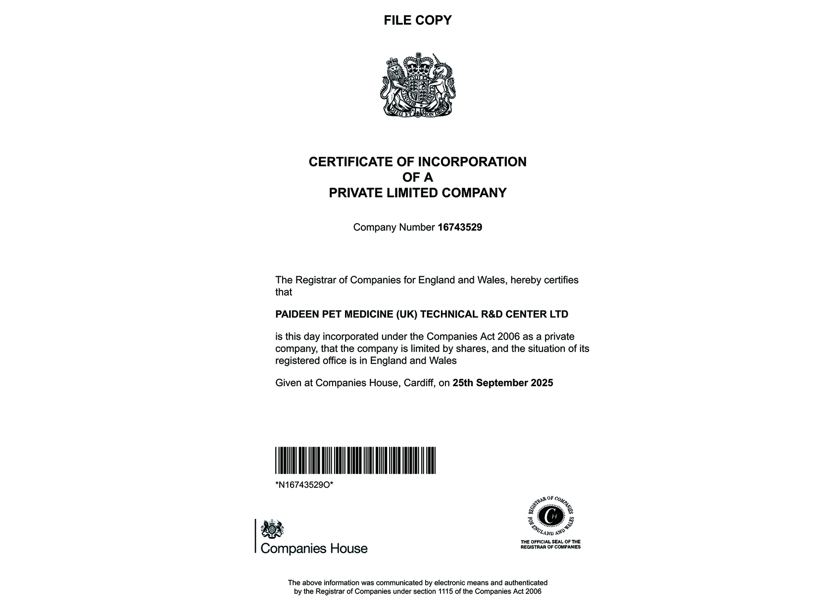 派得恩集团股份有限公司是由派得恩动保药业(江苏)有限公司,派得恩动保药业(洛阳)有限公司,派得恩宠物医药(英国)技术研发中心组成的集团公司。总部位于中国香港,集团战略发展:技术研发,实业投资,宠物医药,医疗耗材,酒店管理五大主营业务。集团公司奉行“品行天下,厚德载物”的发展理念,以产品创新为突破,以品牌建设为核心,以市场经营为导向,以奉献社会为使命,与客户、与社会各界“共创、共赢、共享”是集团公司永远不变的追求,宠物医药是集团公司积极努力的发展方向。