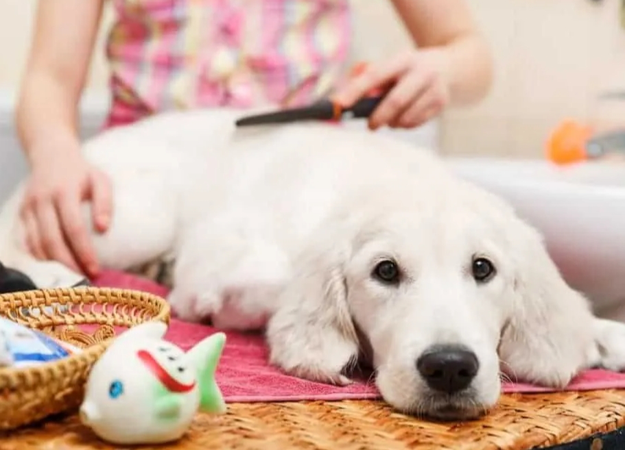 5.给狗狗梳毛时要特别仔细。使用细密的梳子,如果梳子上挂着一些小虫子,就要进一步鉴别是否为蜱虫。